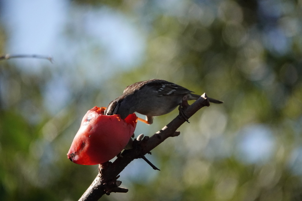 柿好吃(白冠帶鵐)