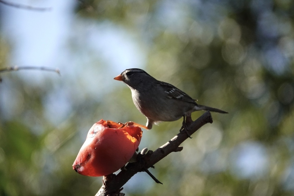 柿好吃(白冠帶鵐)